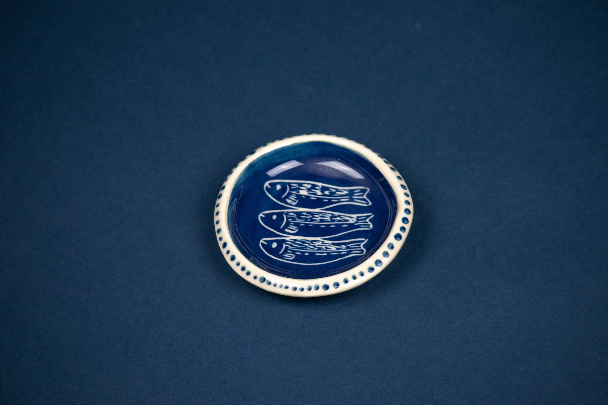 Carved Fish Trio Circle Plate 3.5"