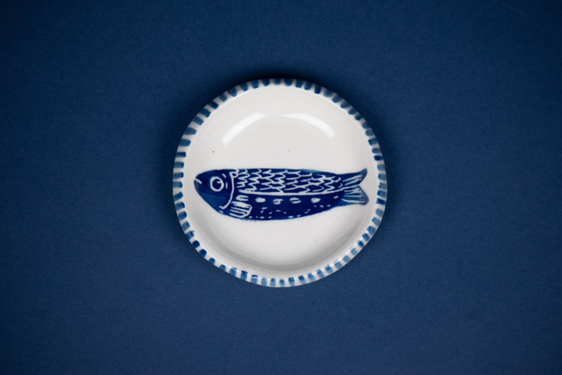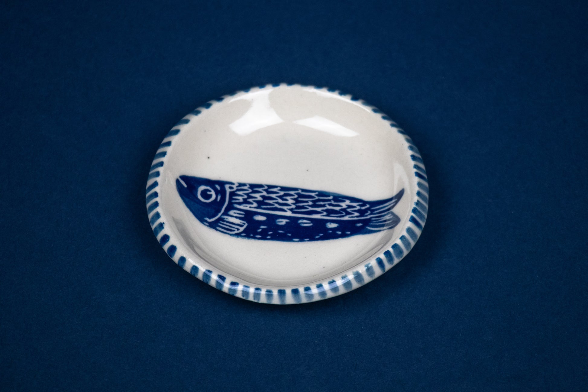 Single Fish Circle with Striped Rim 3.5"
